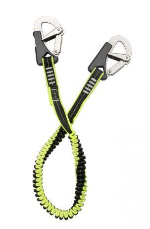 Plastimo veiligheidslijn elastisch, 23 mm breed en 1 tot 1,5 meter lang, met twee zelfsluitende RVS veiligheidshaken.