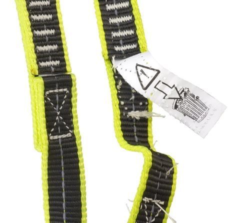 Voorzien van spannnigsindicatie. Indien de veiligheidslijn onder spanning heeft gestaan, dan wordt een label zichtbaar, dat de lijn vervangen moet worden.