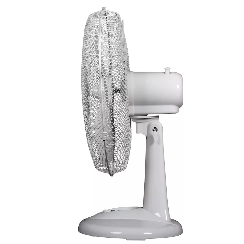 Compacte 40 cm tafelventilator voorzien van 3 bladen en 3 ventilatiestanden. Verder is de ventilator horizontaal kantelbaar en verticaal kantelbaar.