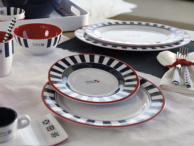 Het scheepsservies Venezia is voorzien van het kenmerkende Venezia met de blauw/wit/rode kleuren. Het design neemt je in gedachten direct mee naar het mooie Venetië. Het Venezia servies is gemaakt van 100% melamine, een zeer valbestendig en stootvast materiaal, waardoor het servies praktisch onbreekbaar zijn.